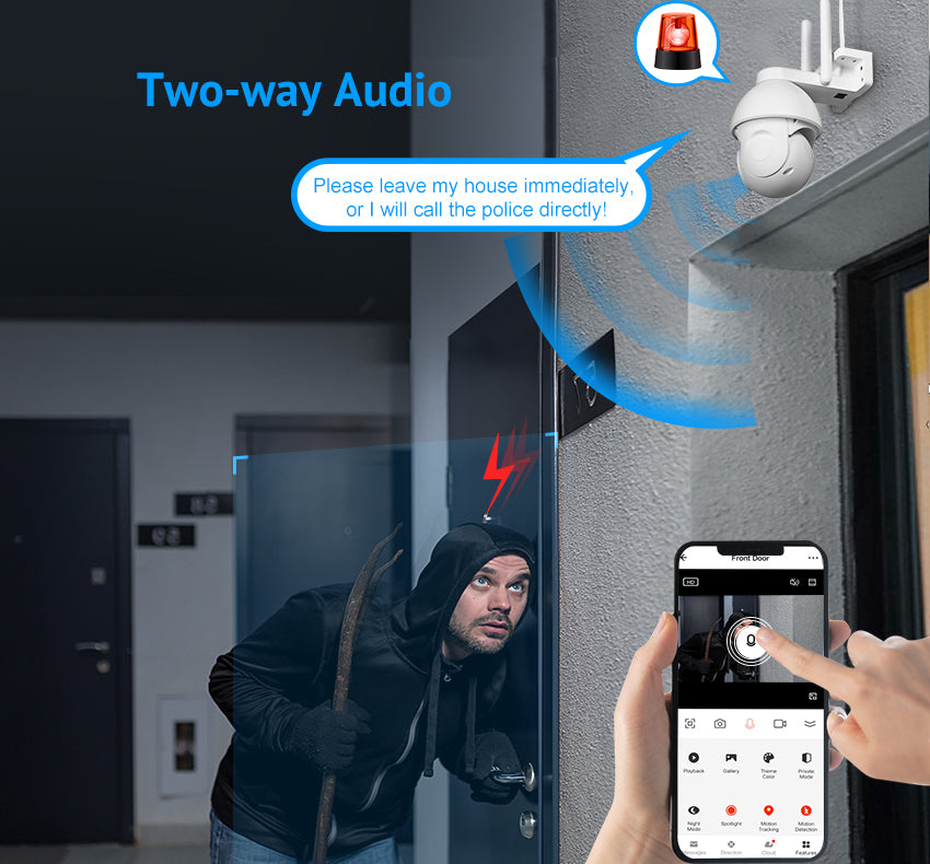 Our home surveillance system offers the convenience of both cloud storage and SD card storage. With cloud storage, your footage is securely stored offsite, ensuring it's protected even if the camera is tampered with. On the other hand, SD card storage provides a local backup, offering peace of mind in case of network interruptions. Choose the storage option that suits your needs and enjoy seamless data access whenever you need it.
